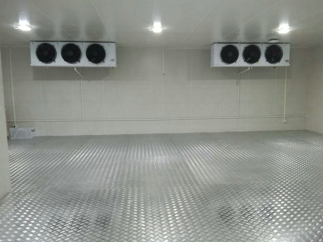 間接冷卻是由鼓風機將庫房內的空氣吸進空氣冷卻裝置,空氣被盤旋于冷卻裝置內的蒸發管吸熱后,在送人庫內而降溫,空氣冷卻方式的優點是冷卻迅速、庫內溫度均勻,同時能將貯藏過程中產生的有害氣體帶出庫外。