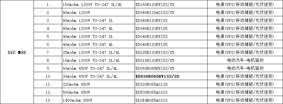 XD030B065BV1S3/S5 芯達茂  SiC MOS   30mohm 650V TO-247 3L/4L