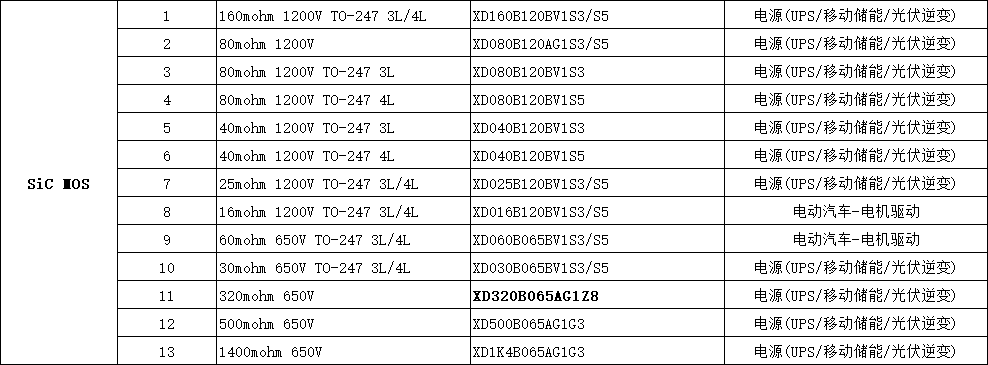 XD320B065AG1Z8 320mohm 650V 電源(UPS/移動儲能/光伏逆變)