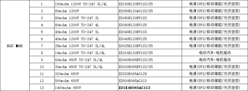 XD1K4B065AG1G3   1400mohm 650V 電源(UPS/移動儲能/光伏逆變)