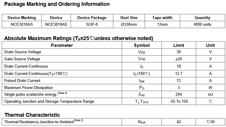 NCE3018AS采用先進(jìn)的溝槽技術(shù)和設(shè)計,以低柵極電荷提供優(yōu)異的Rps(on),可用于多種應(yīng)用。
