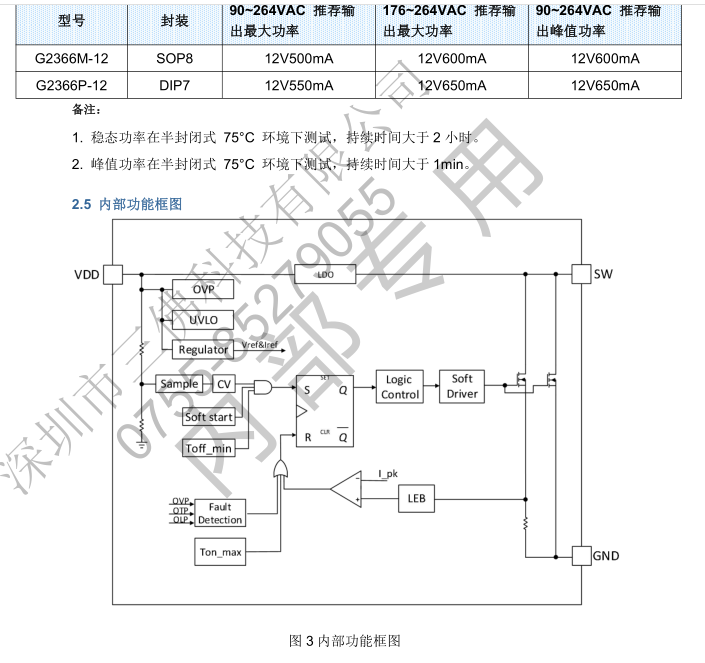G2366X-12 提供了豐富的保護功能,包括:VDD欠壓和鉗位保護、輸出過壓保護、過流保護、過溫