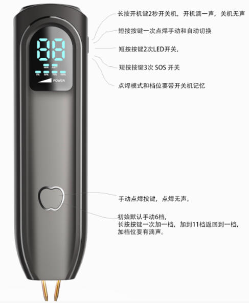 • 全記憶:模式/檔位/LED/SOS狀態掉電保存,開機即可繼續上次的焊接手感。