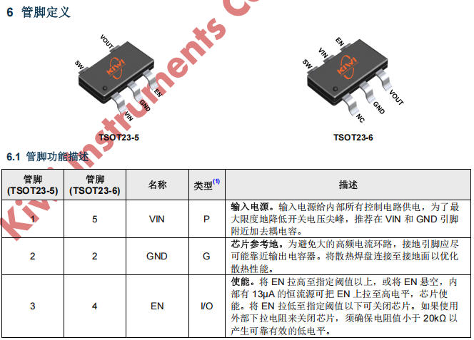管腳定義(TSOT23-6 視角)