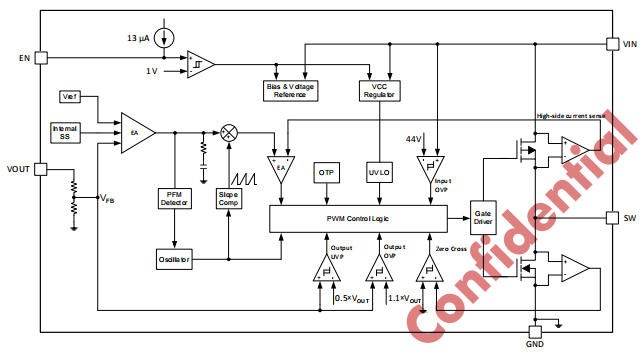 VIN OVP 44V/42V(滯回)—— 抑制汽車負載跳變尖峰