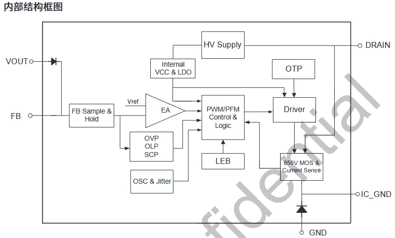 • BP8523D:內部700V功率MOSFET+高壓啟動+原邊反饋,無需Y電容、光耦、431。