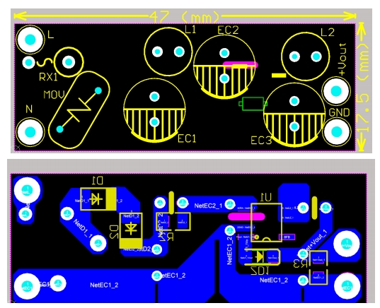 • 尺寸:47mm×17.5mm,單面板,適合直插THT+貼片混裝,可直接塞進86盒、小夜燈、充電底座。
