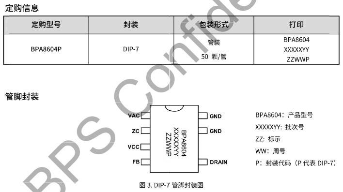 封裝特點: DIP-7比標準DIP-8少一腳,增加DRAIN到GND的爬電距離,適合高壓潮濕環(huán)境。