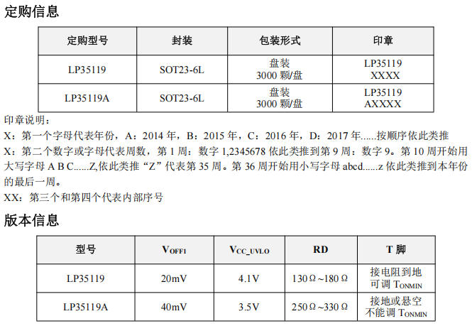 | 參數(shù) | LP35119 | LP35119A | MP6908參考 |