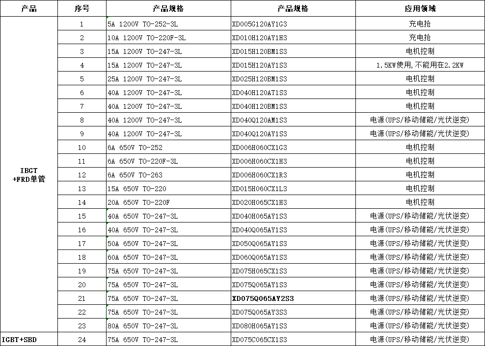 XD075Q065AY2S3 芯達茂 國產IBGT +FRD單管 75A 650V TO-247-3L  應用:電源(UPS/移動儲能/光伏逆變)